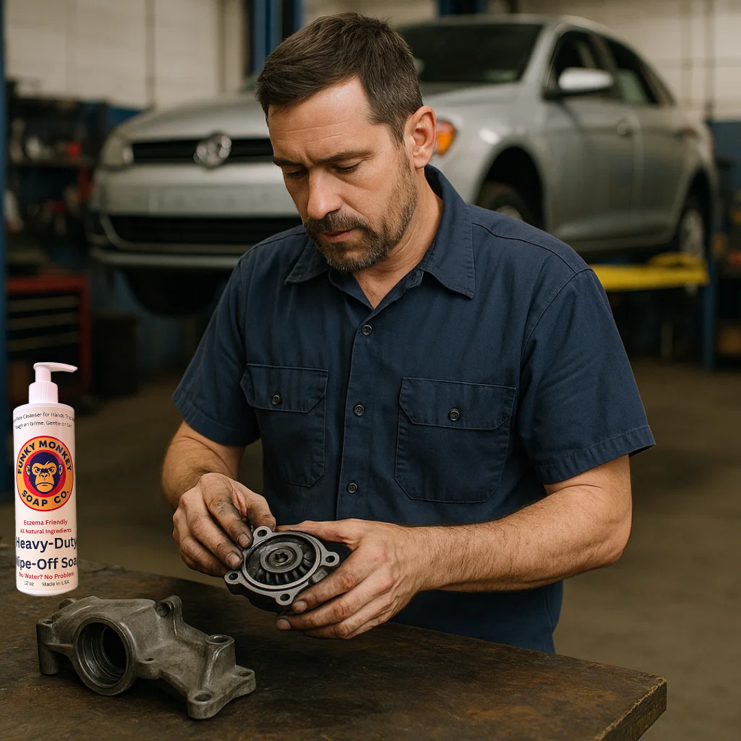 When regular soap taps out, Heavy-Duty steps in. Formulated with bentonite clay, tremella mushroom extract, and a powerful blend of natural cleansers, this wipe-off soap is built for mechanics, makers, and anyone who earns their dirt. Strong enough to tackle grease and grime — gentle enough to use every day.